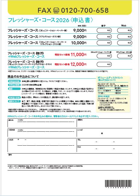 フレッシャーズコース2026の内容をpdfでご覧いただけます。 ここをクリックしてください。